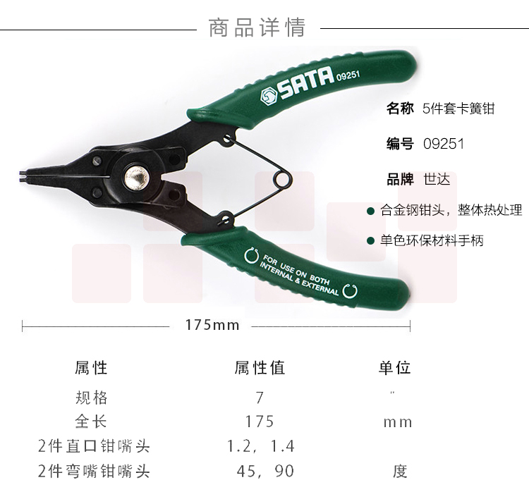世达(SATA)5件套卡簧钳/挡圈钳 货号09251