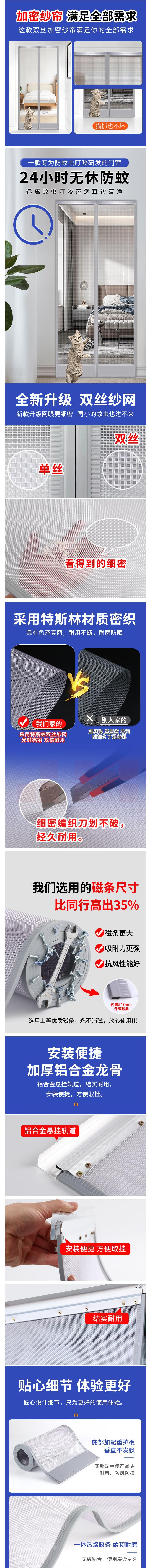 夏季防蚊门帘 磁吸纱帘 纱窗 50*210cm 货号:GD