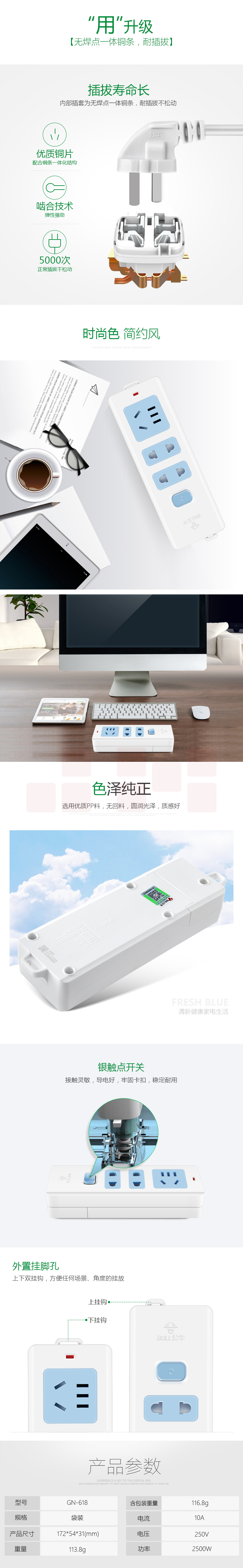 GN-618 不带电源线 无线 插座 无线接线板3位带开关多功能排插插线板拖线板