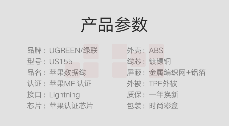 绿联 MFI认证 苹果数据线 6/5s/7支持iphone5/6s/7Plus/SE/ipad pro 1米 20728