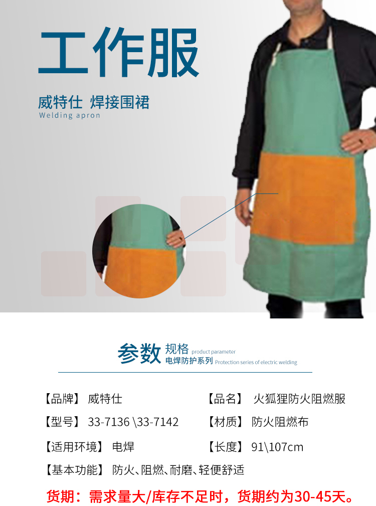 威特仕 / WELDAS 33-7136火狐狸护胸围裙加耐磨皮层电焊专用围裙91cm长轻便电焊围裙 1件
