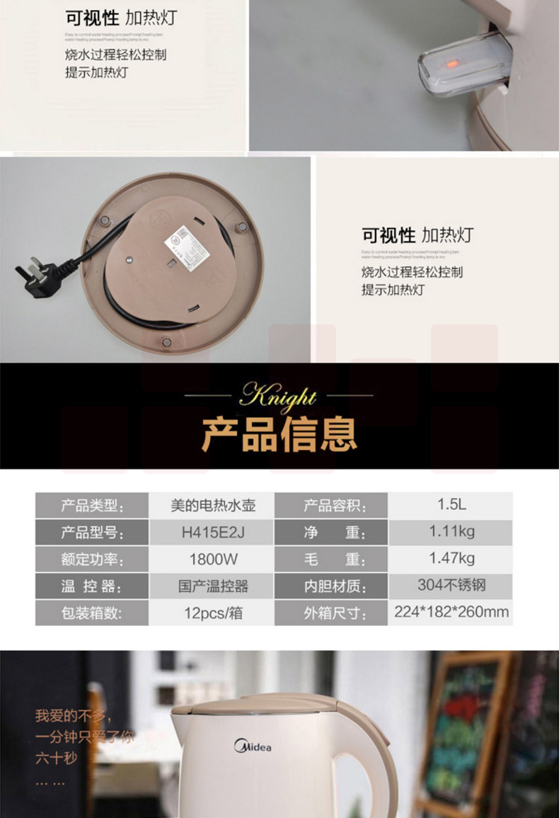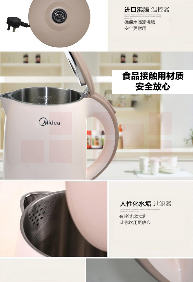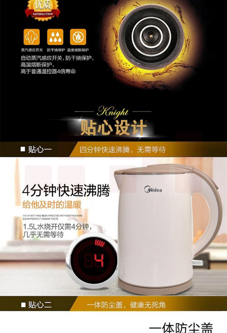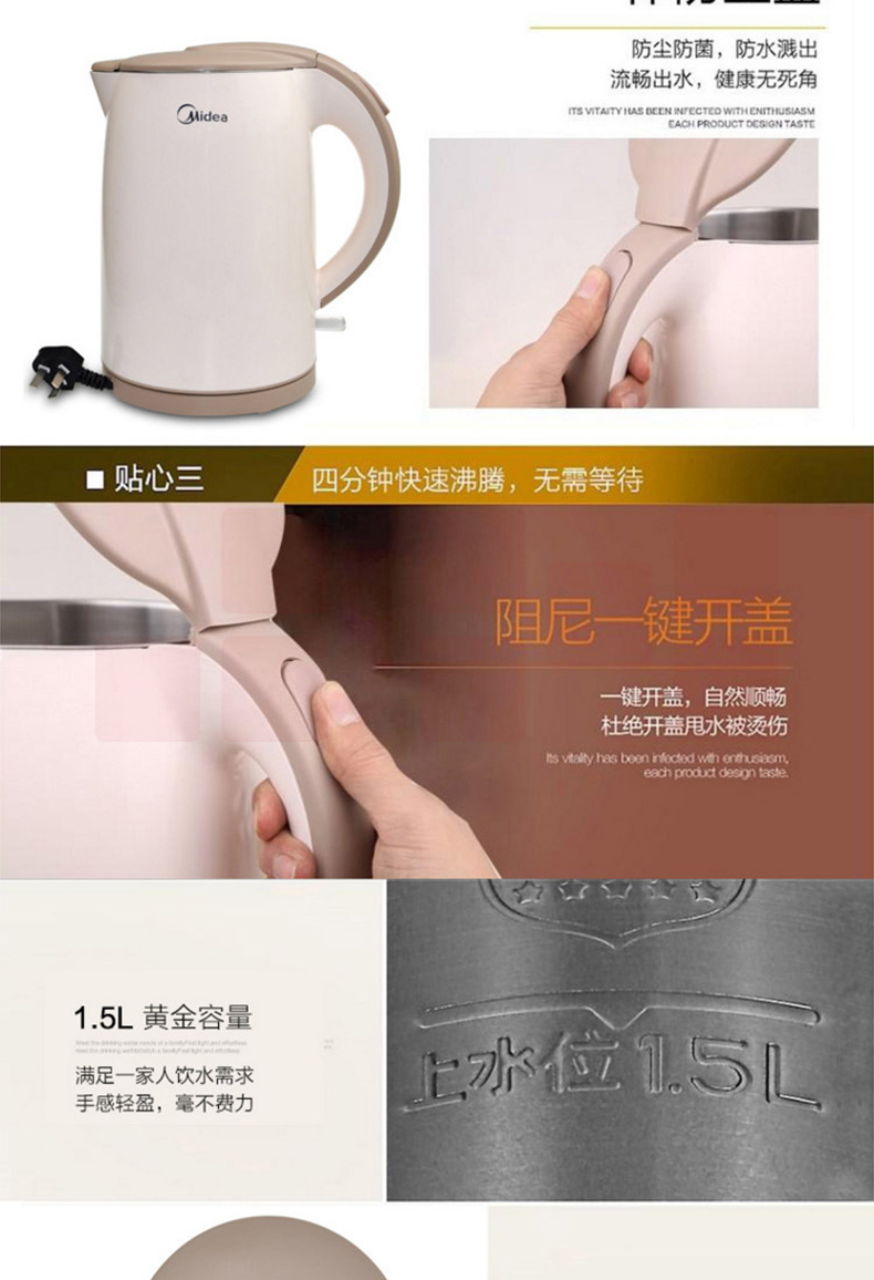 美的(Midea)电水壶MK-H415E2J家用1.5L双层防烫304不锈钢烧水壶