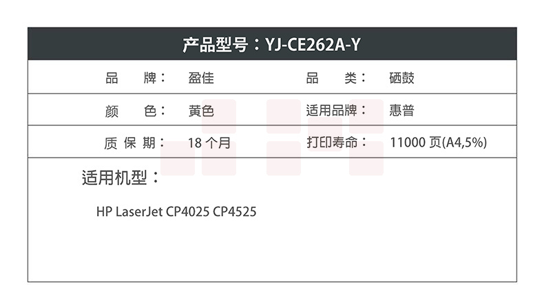 盈佳YJ CE262A(648A)黄鼓(带芯片)