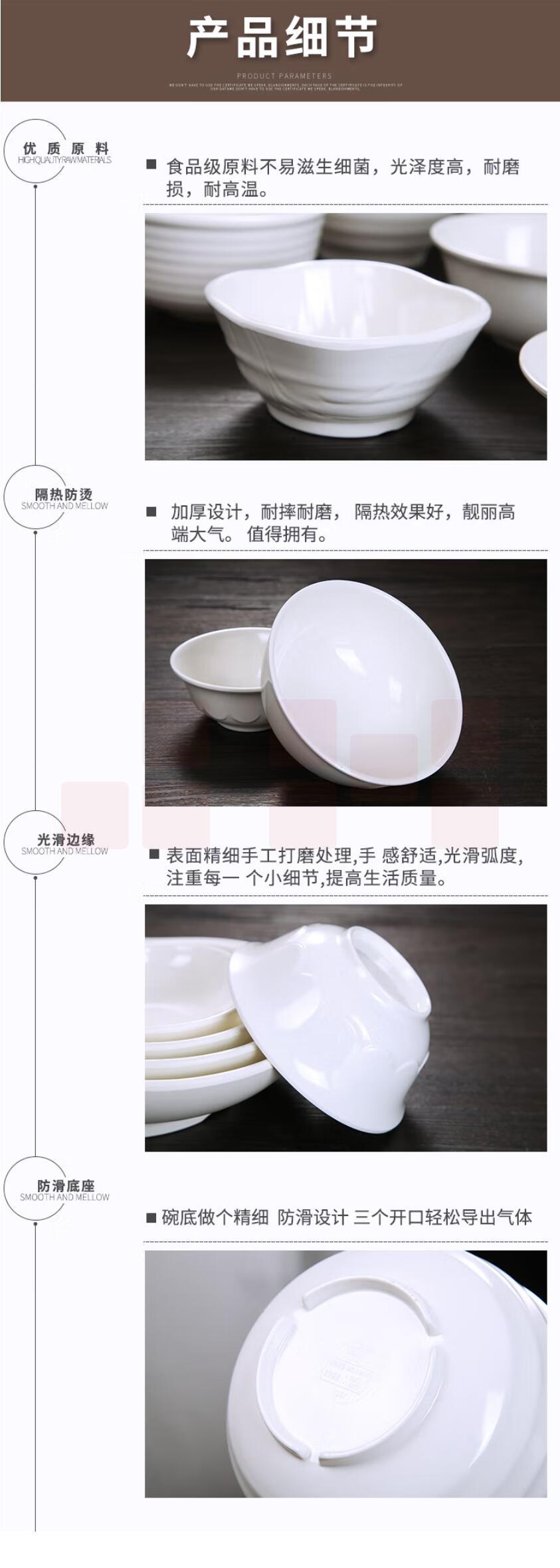 密胺碗仿瓷碗 米白色旋纹碗 直径约19.8cm高度约7.5cm