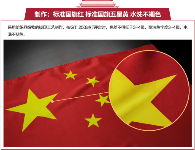 中国国旗 4号 96*144cm 1面旗帜/包 纳米防水防晒 五星红旗