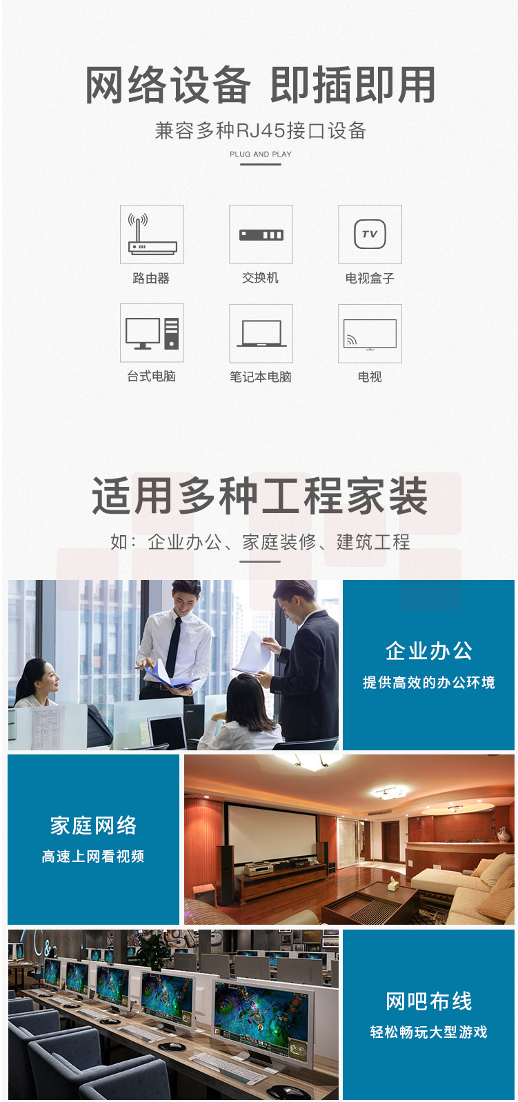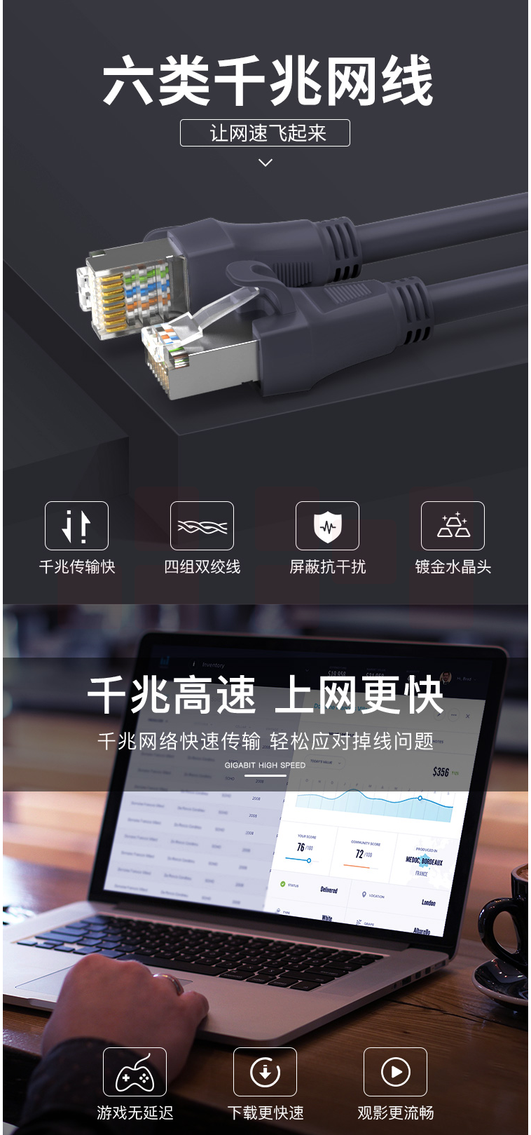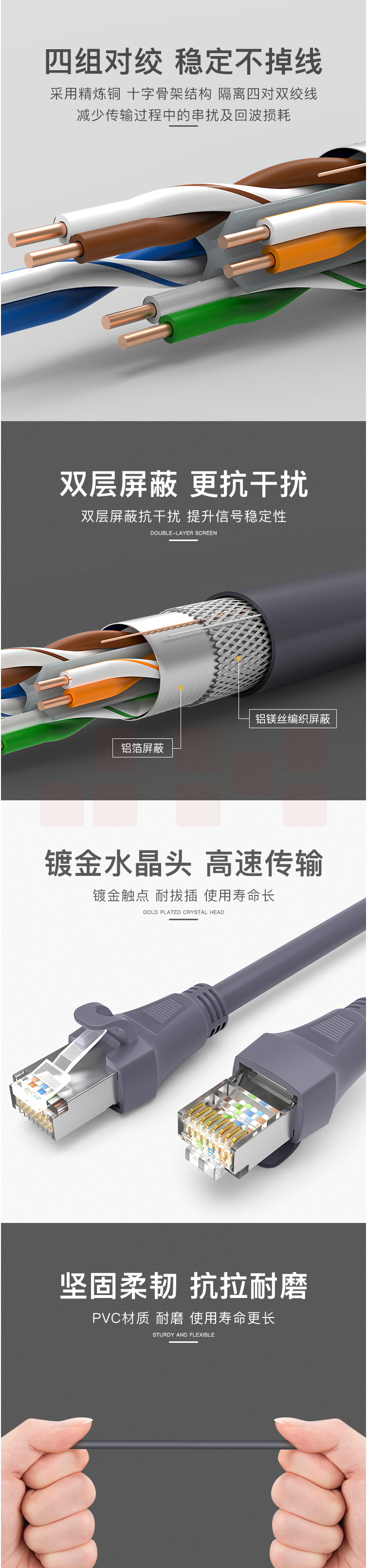 秋叶原(CHOSEAL)六类屏蔽网线 成品网线 网络跳线Cat6六类网线 5米 CT600T5