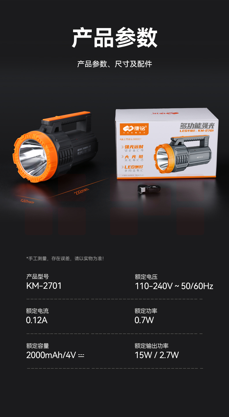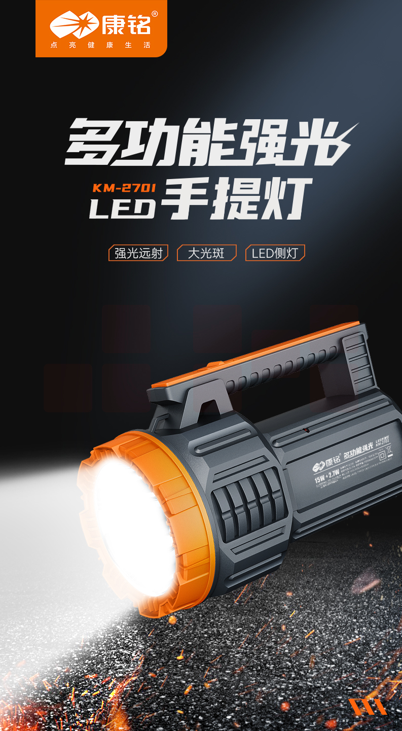 康铭手电筒强光手提灯户外探照灯KM-2701