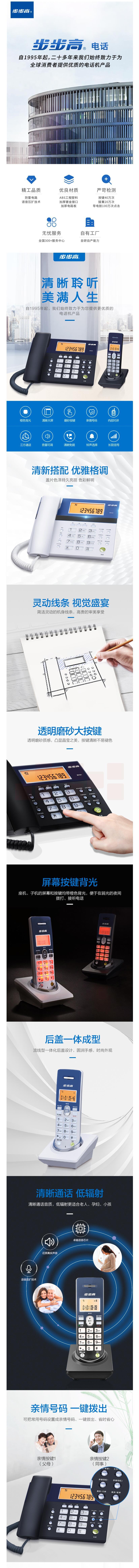 步步高 无绳电话机 无线座机 子母机 办公家用 背光大屏 三方通话 W101灰蓝 货号:JC