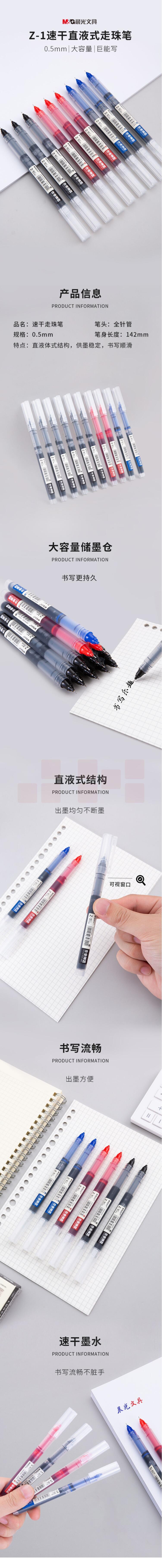 晨光 0.5mm 红色直液笔签字笔中性笔 走珠笔ARPM2001 12支/盒 单支价格