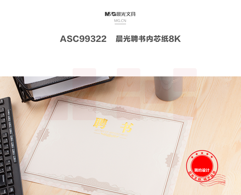 晨光 8K 聘书内芯纸 聘书纸 50张 ASC99322