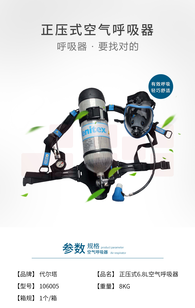 代尔塔 106005 正压式空气呼吸器 6.8L标准配合防化服化工