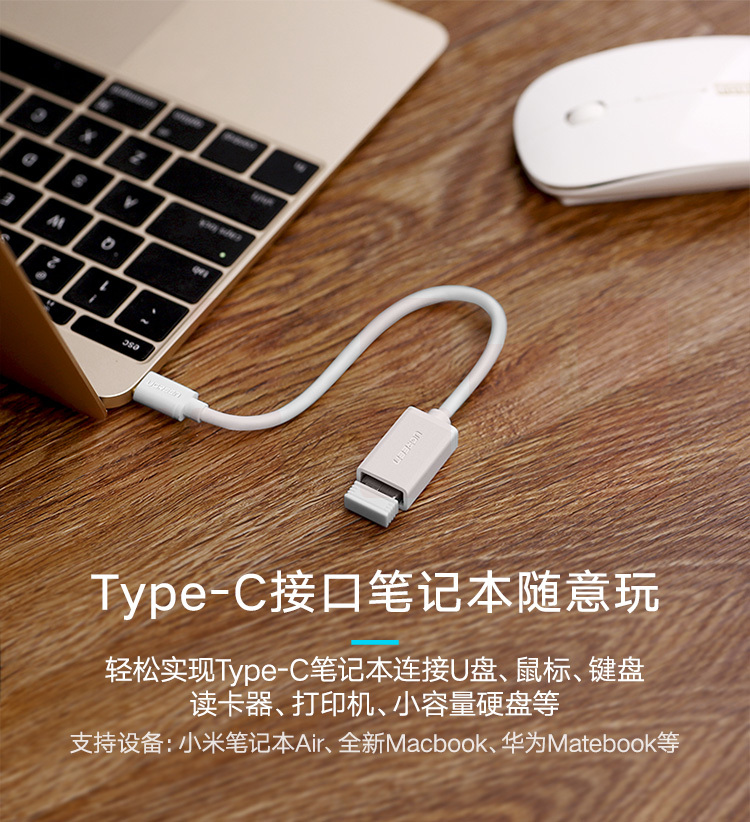 绿联 OTG数据线 Type-C转接头线USB3.0电脑接 USB-C转换器通用安卓小米8/6华为p20手机苹果新MacBook 30701