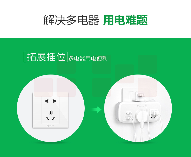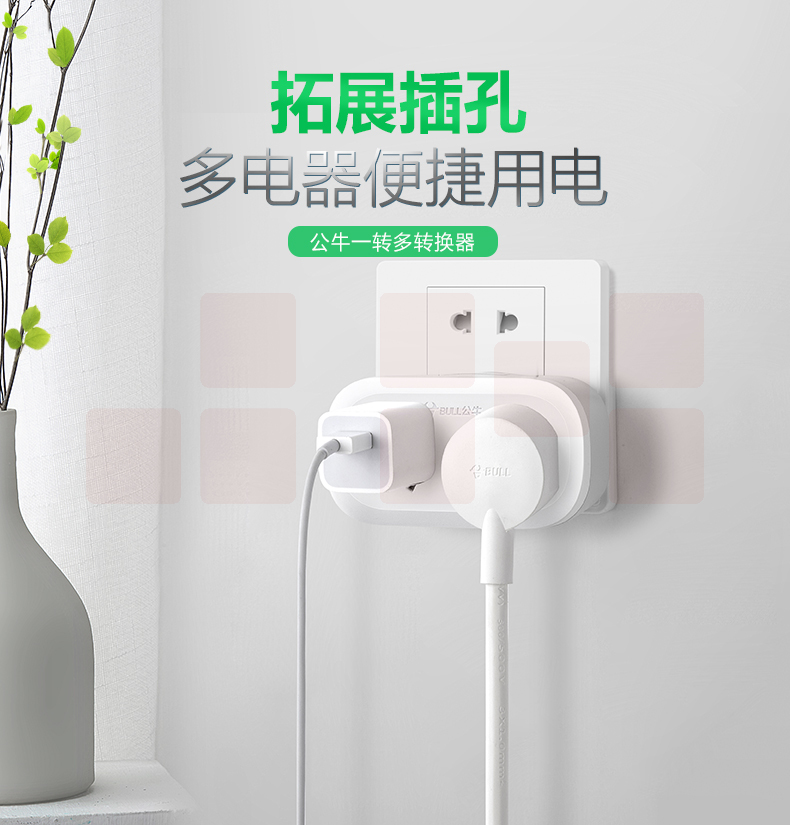 公牛(BULL)GN-903转换器多功能无线电源插座多用扩展一转二万能插座/10A250V/