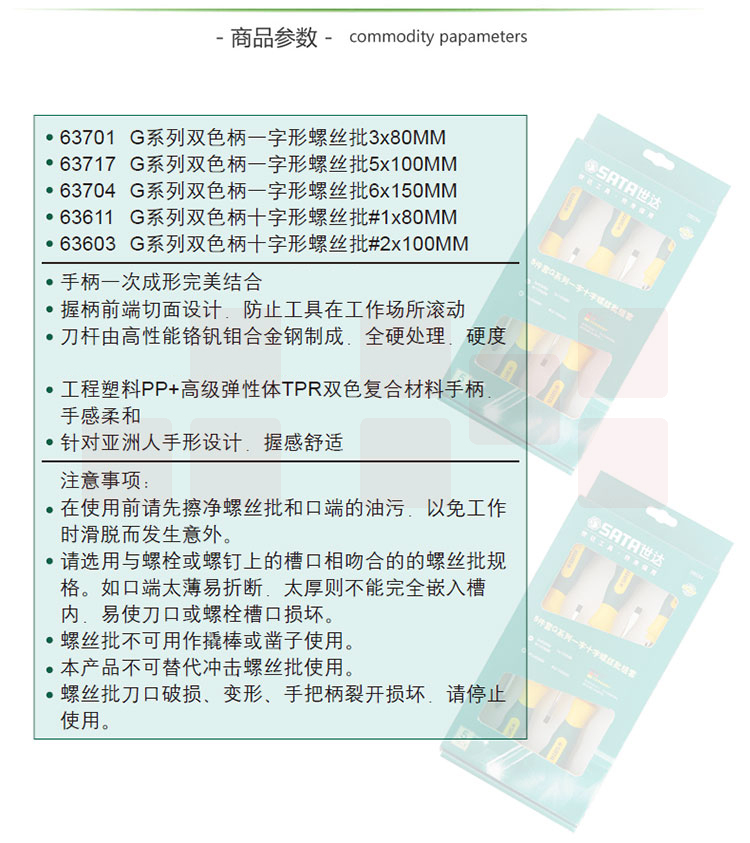 世达(SATA)5件G系列一字、十字螺丝批组套货号09334