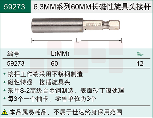 世达(SATA)3件套6.3MM系列60MM长磁性旋具头接杆货号59273