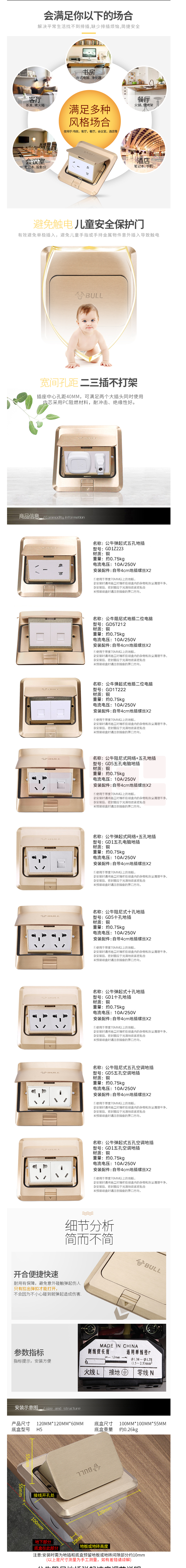 公牛 开关插座 隐藏式多孔地插 十孔地插
