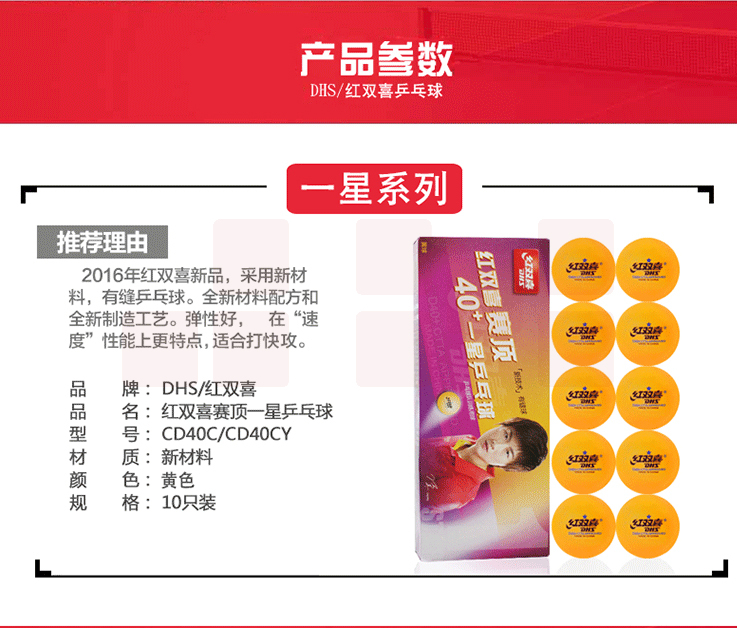 红双喜 赛顶黄色一星级比赛训练40+ (十只装)