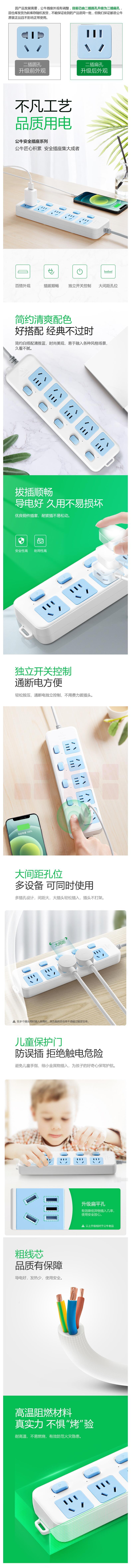公牛 GN-316 5位分控1.8米多位插座 插排/接线板/独立开关