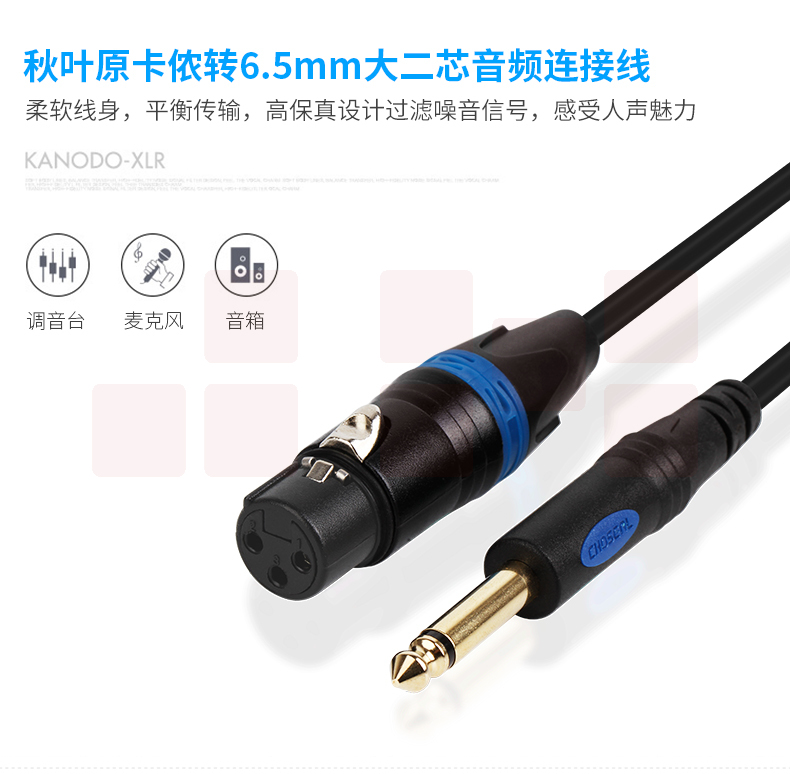 秋叶原(CHOSEAL)6.5转卡侬母话筒线麦克风线大二芯调音台线 Q801T10 10米