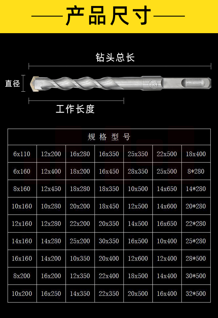 大地 6x160 方四坑电锤钻头/方柄四坑合金钻头
