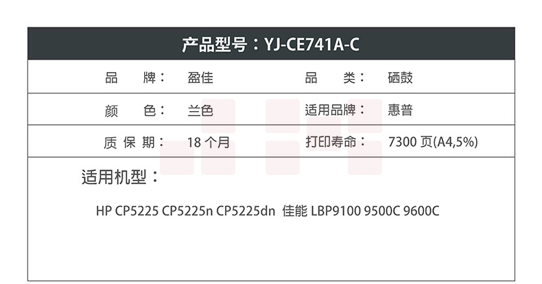 盈佳YJ CE741A(307A)兰鼓(带芯片)