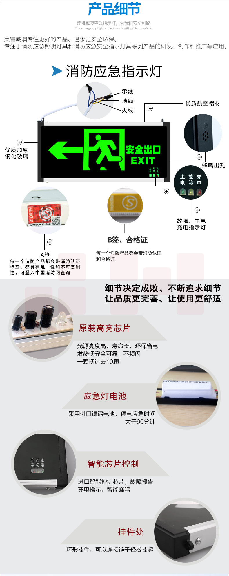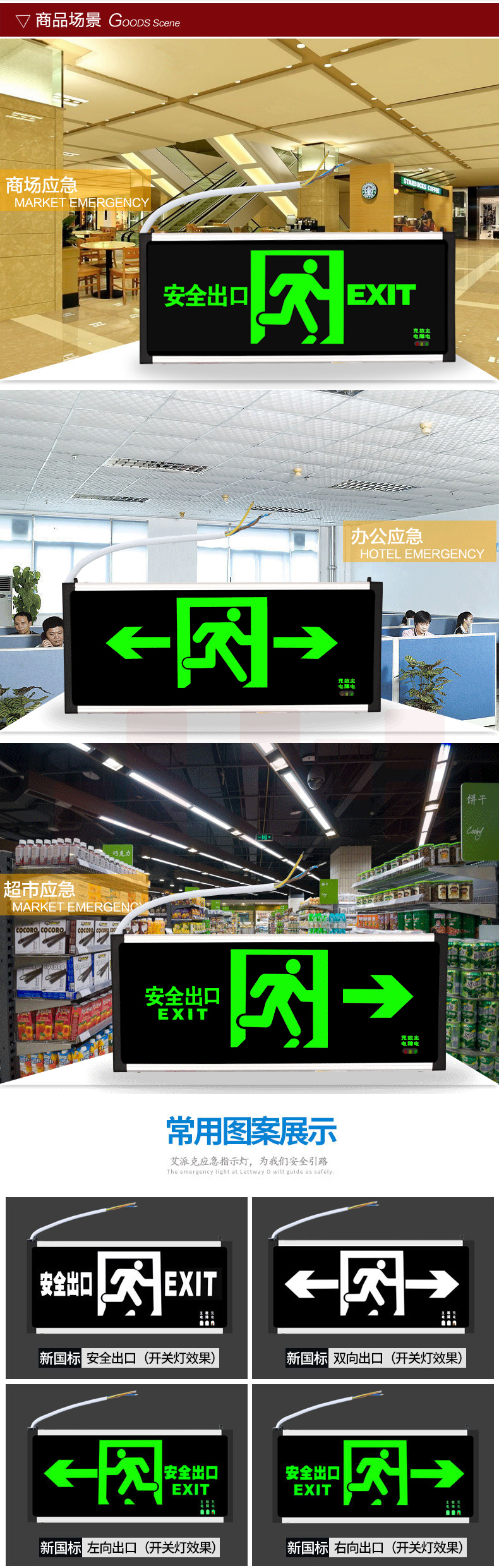 双面 D215 单向国标LED安全出口指示灯;产品尺寸:332*23*145mm