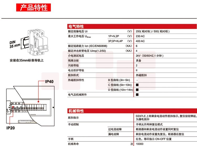 德力西 DZ47SLE-4P C型 20A (拼装) 漏电保护断路器