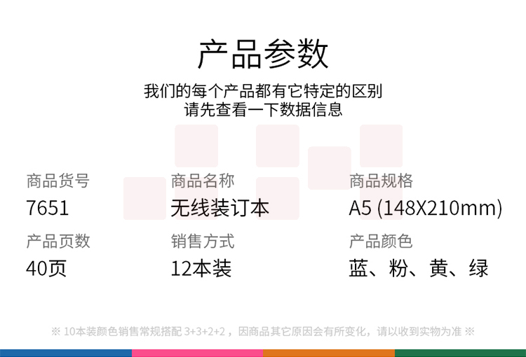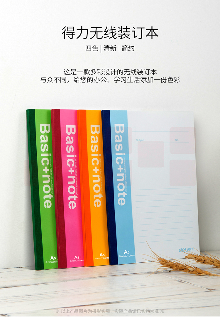 得力 A5/40张无线装订软抄本记事本 7651 混色 40页(整包拍12)