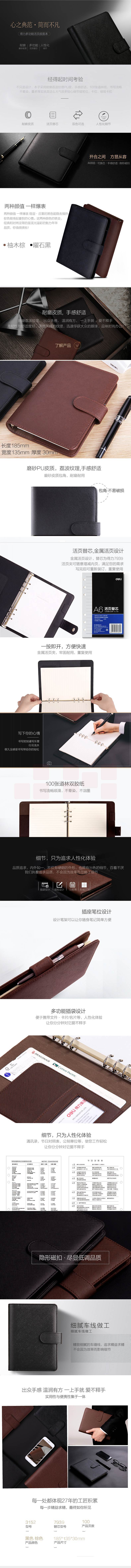 得力3152活页本记事本 6孔/48k 皮面本100张
