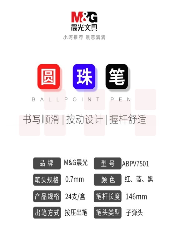 晨光 ABPV7501 晨光 0.7mm 办公圆珠笔 (24支/盒) 按支销售