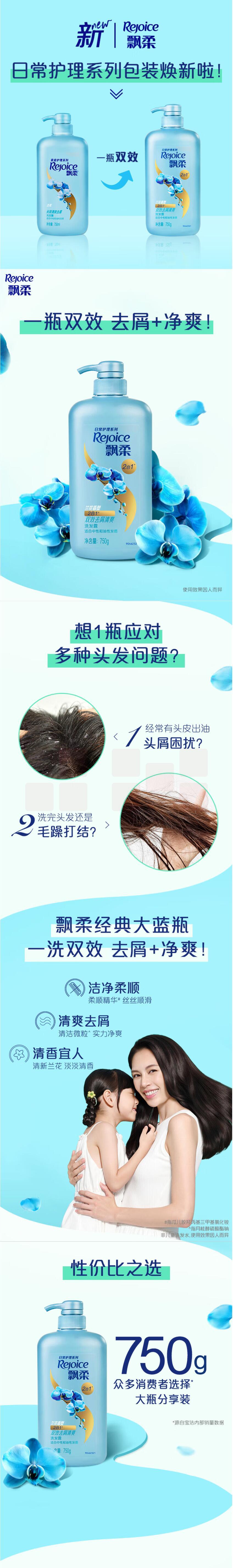 飘柔去屑洗发露 750ml 长效清爽 兰花清香