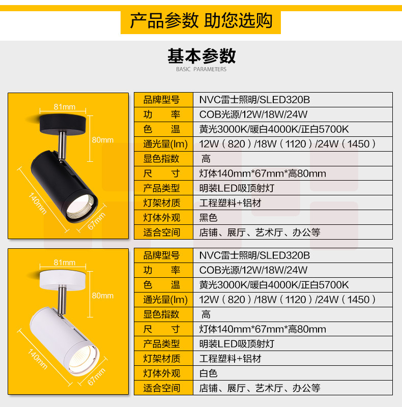 雷士(NVC)LED吸顶式COB轨道射灯12个/箱