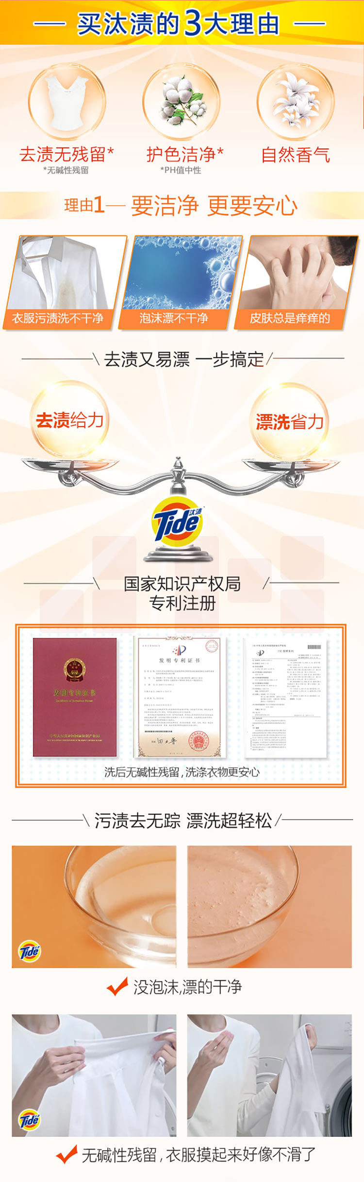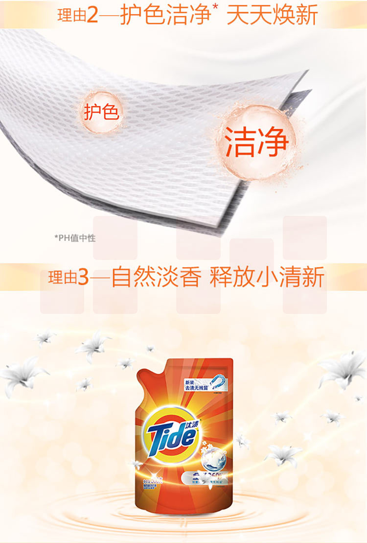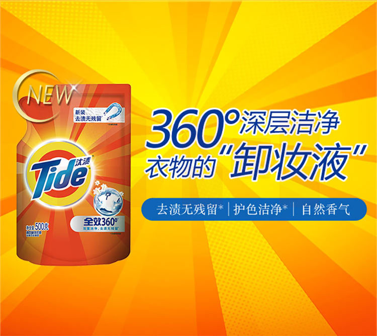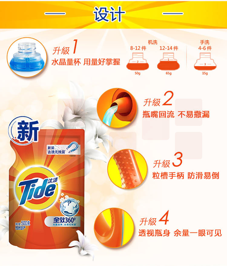 汰渍(Tide)洗衣液袋装500g 24袋/件