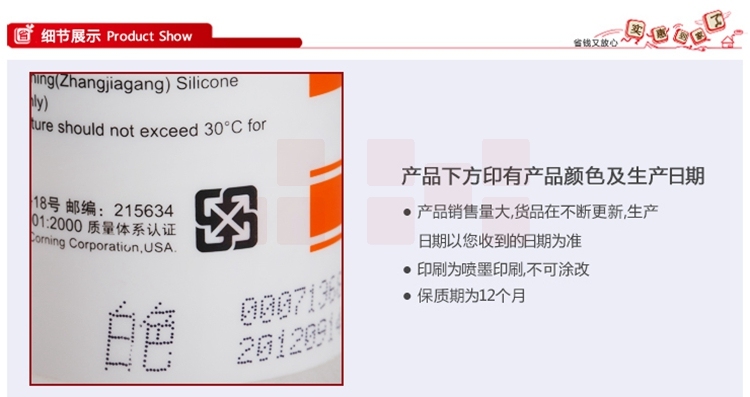道康宁 玻璃胶酸性密封胶厨卫门窗吊顶硅胶防水防霉 透明 白色 黑色 300ml