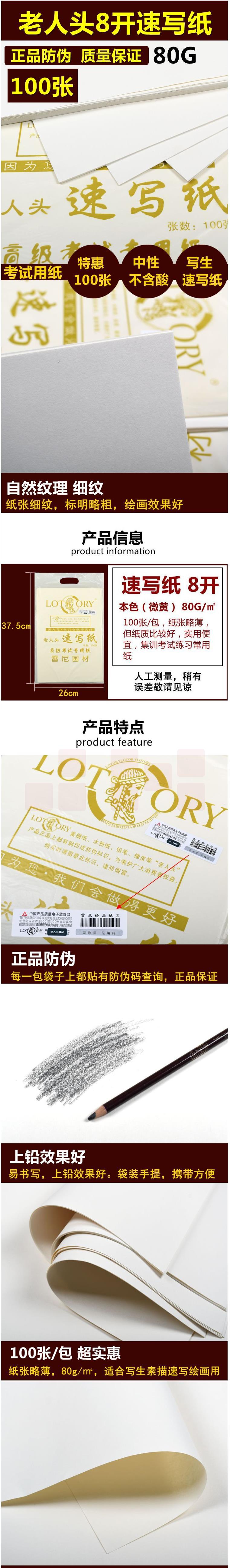 老人头(lotory) 8K速写纸 专业美术生用纸 100张/包 货号:JC