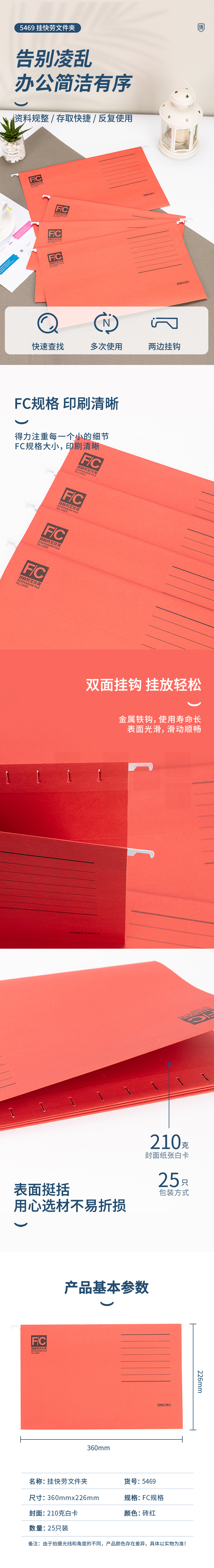得力 A4吊挂快劳文件夹 5469FC挂式文件夹