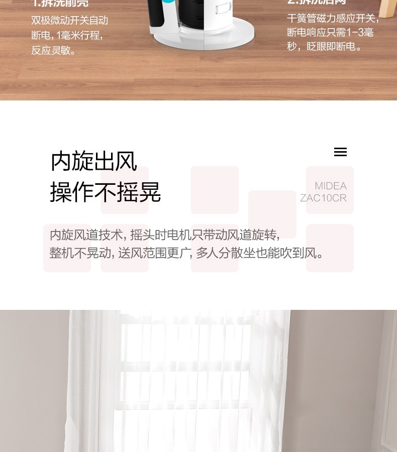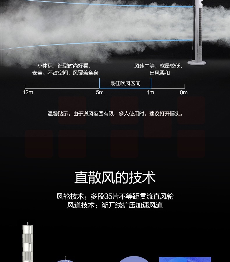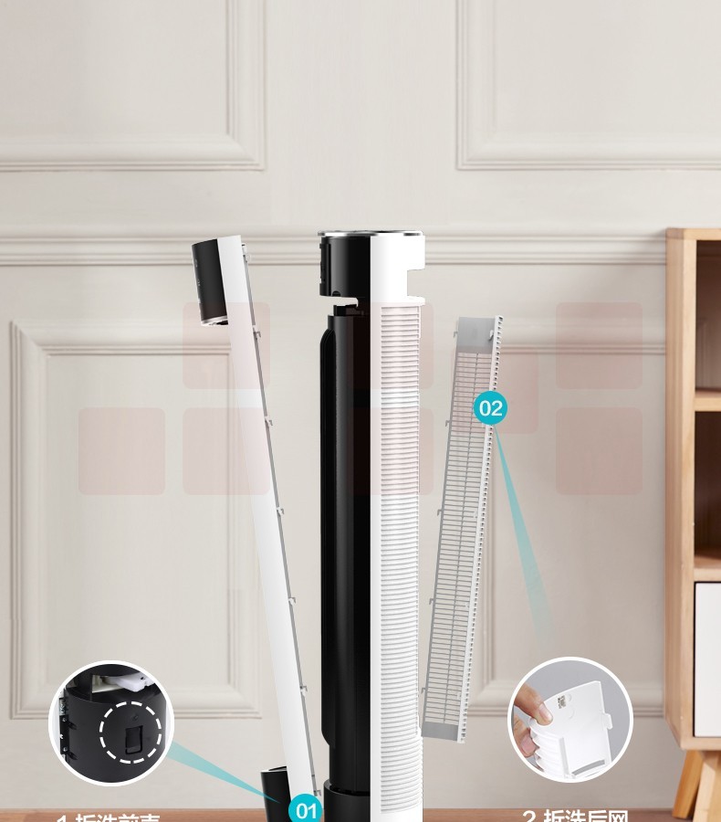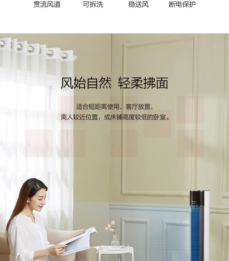 美的(Midea)ZAC10CR落地塔扇静音迷你立式无叶电风扇