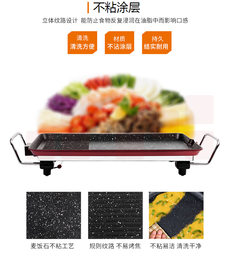 克来比(KLEBY)电烧烤炉 麦饭石家用无烟电烤炉烤肉锅烧烤炉 韩式电烤盘烤肉机 长68cm宽29cm