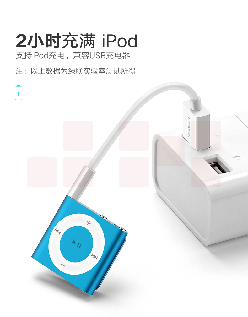 绿联 充电线 通用Apple ipod Shuffle7/6/5/4/3代苹果MP3 USB数据线转接头 充电器线电源线10CM 50146 白