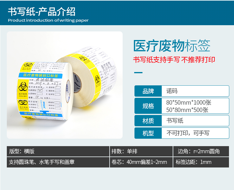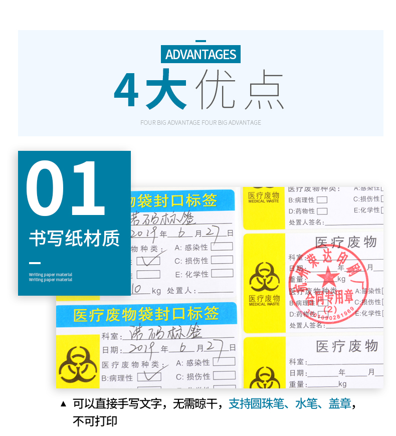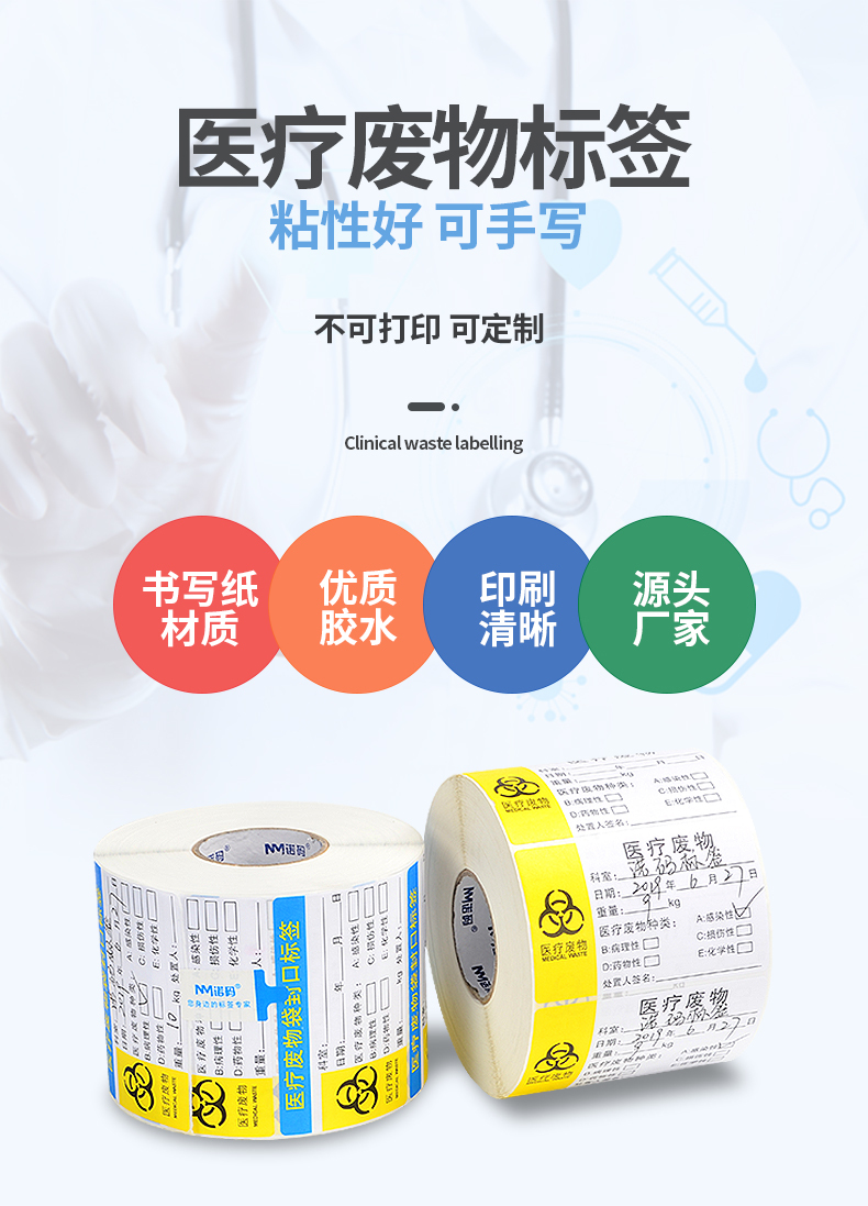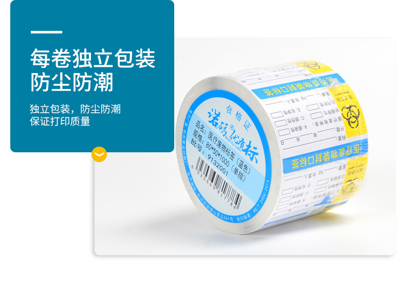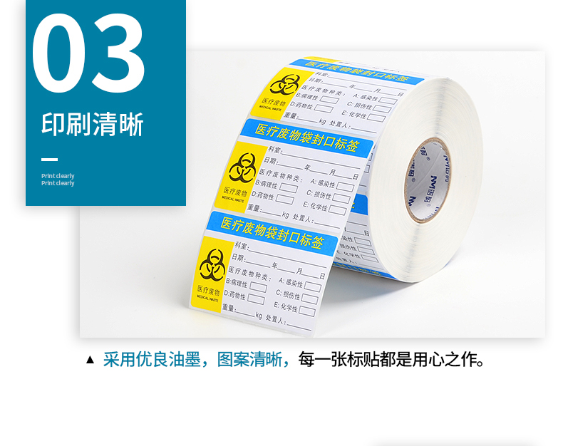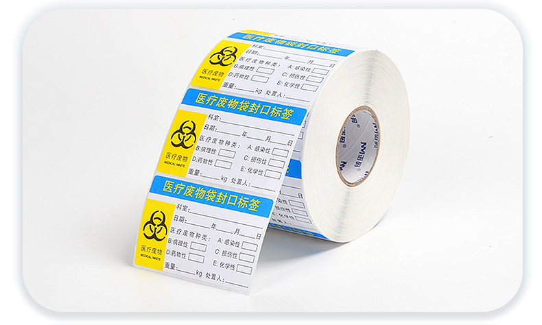 医疗废物标签贴纸封口贴垃圾医废标贴不干胶80*50*1000张医用警示标感染性医疗废弃物标识医疗废物袋封口标签