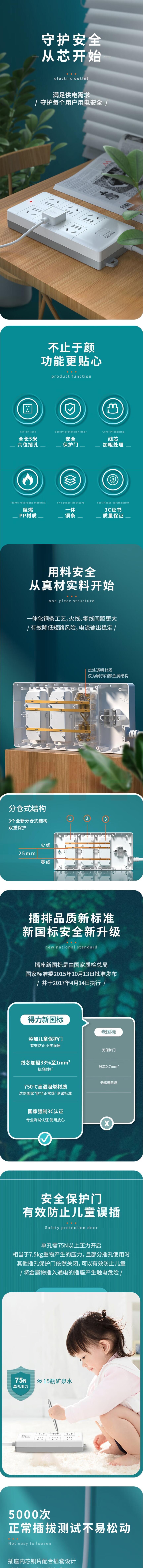 得力 18261 总控 6位5米 新国标安全插座接线板/排插