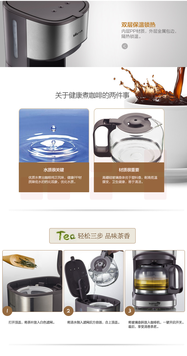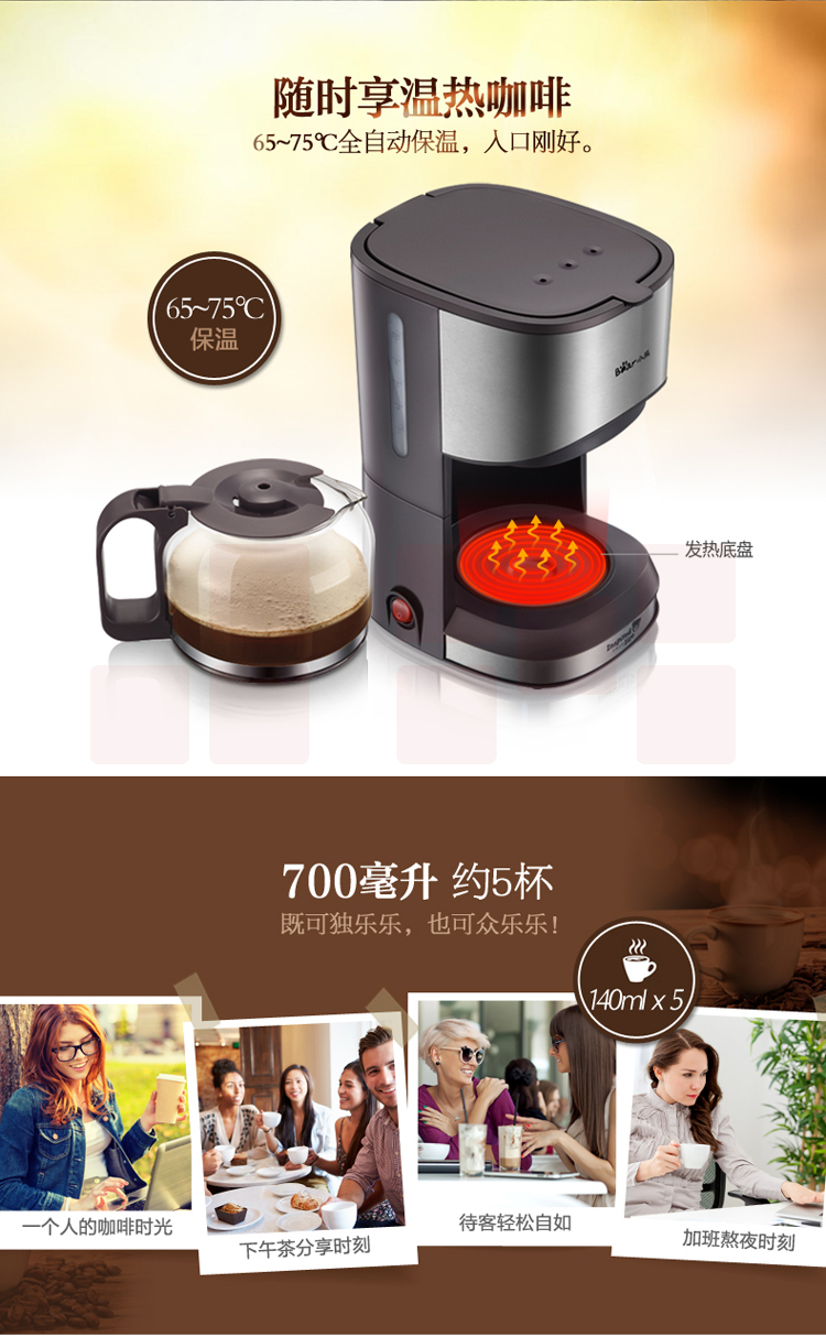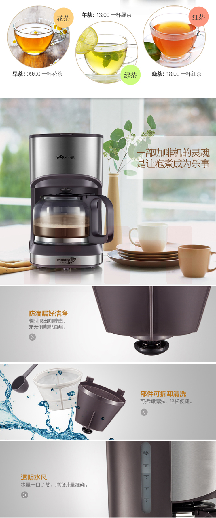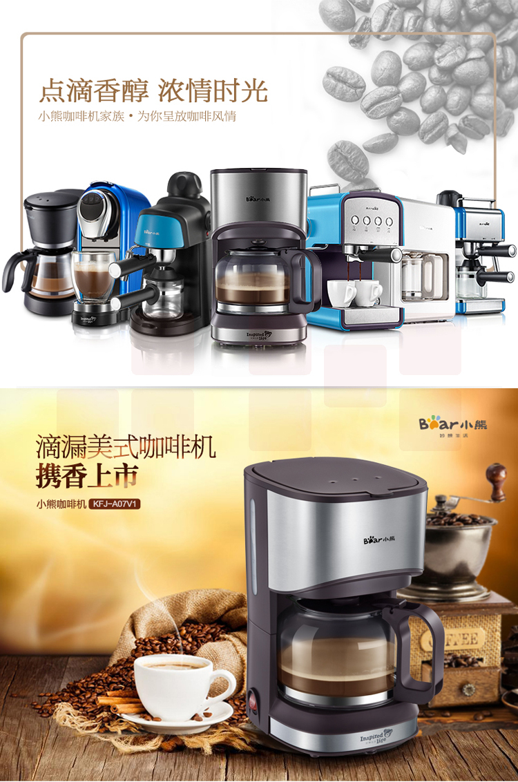 小熊(Bear) KFJ-A07V1咖啡机 美式家用 0.7L全自动滴漏式小型泡茶煮咖啡壶