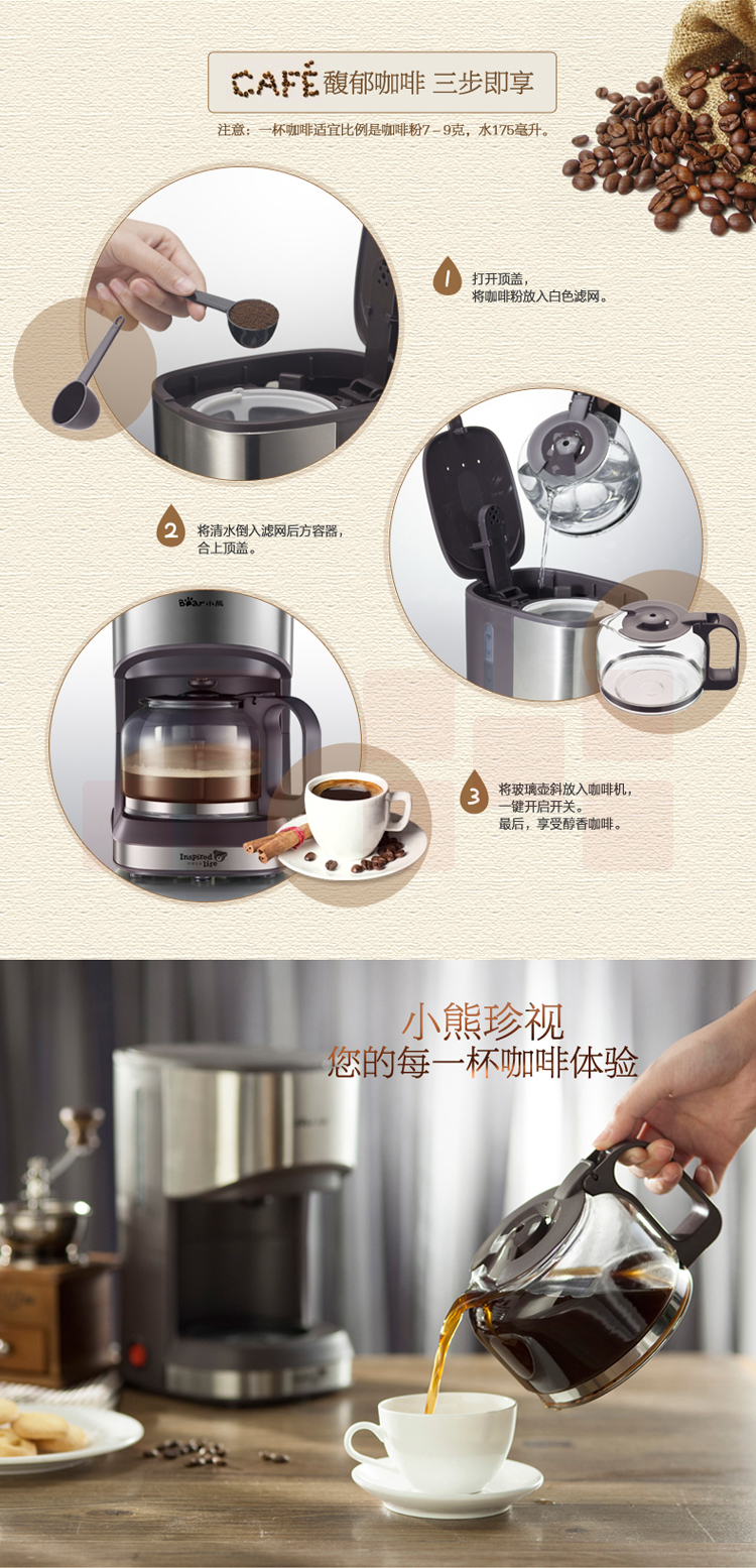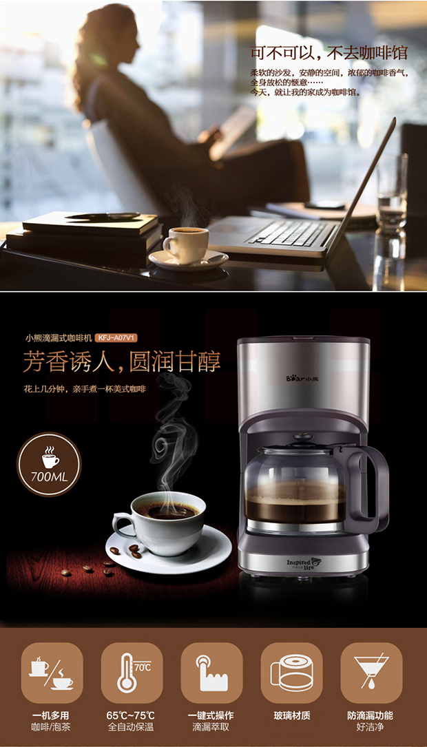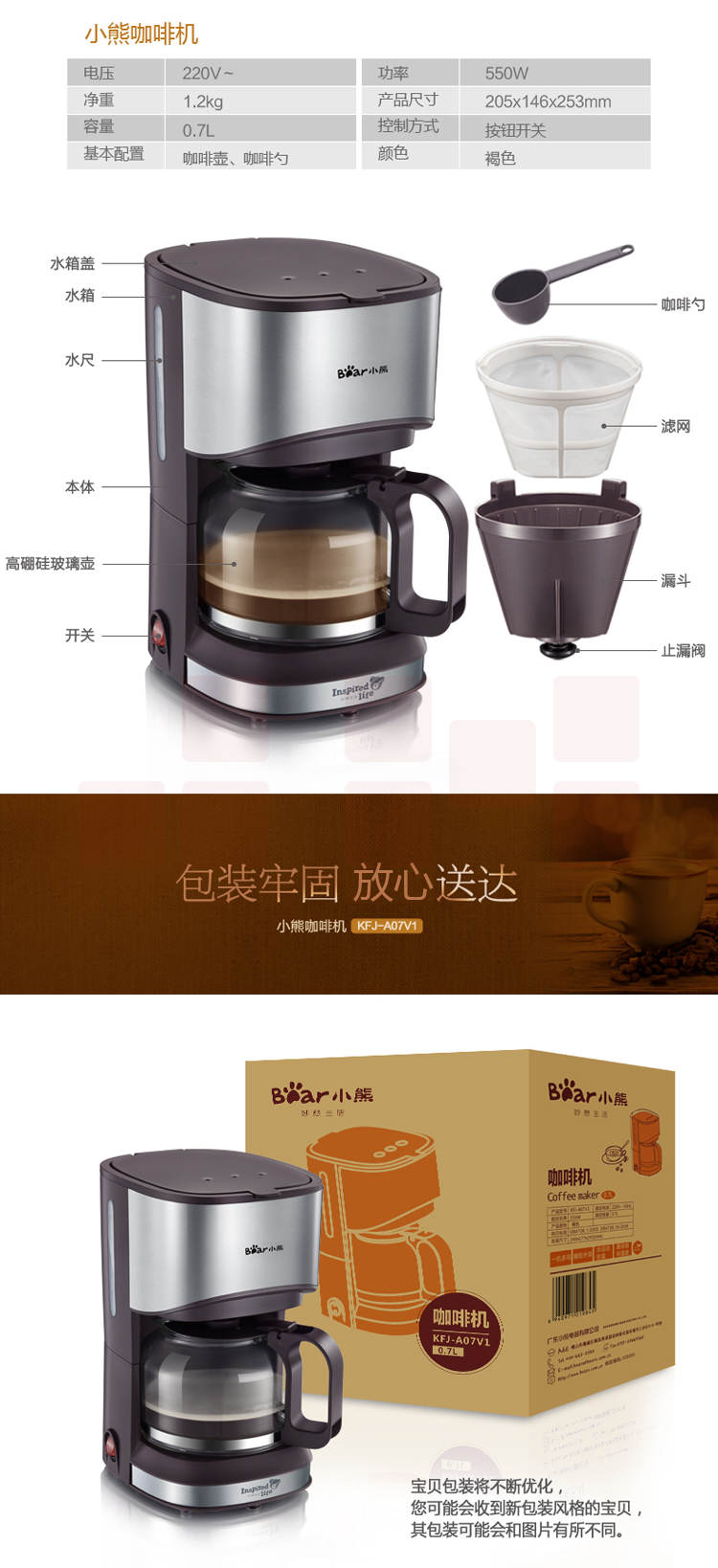 小熊(Bear)咖啡机 美式家用 0.7L全自动滴漏式小型泡茶煮咖啡壶 KFJ-A07V1
