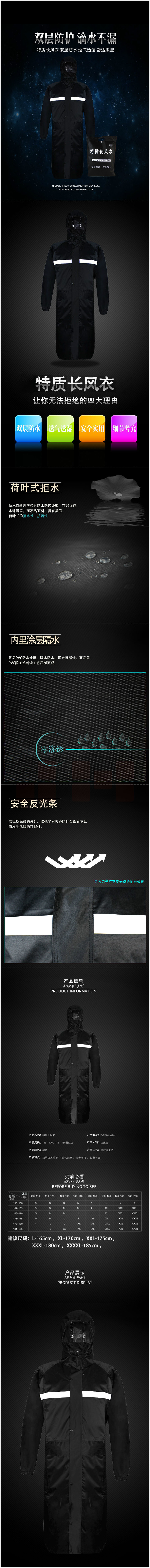 谋福 9292 长风衣款雨衣 XL-170 黑色
