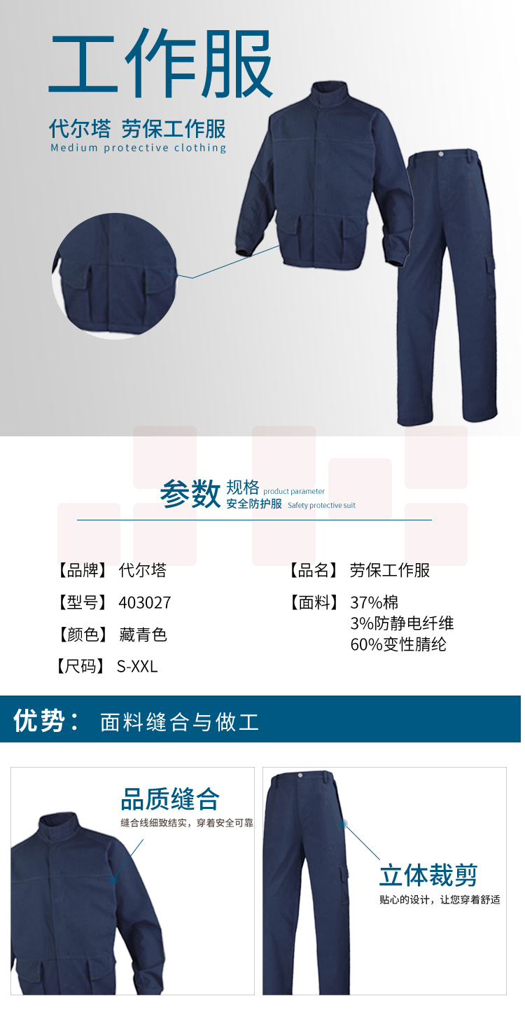 代尔塔 403028 三防工装裤 防化阻燃防静电 劳保工作裤