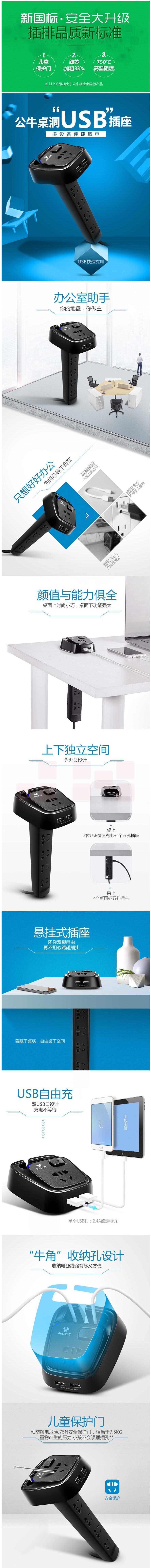 BULL/公牛接线板 GN-U2050 1.8M吸1平方(新国标)