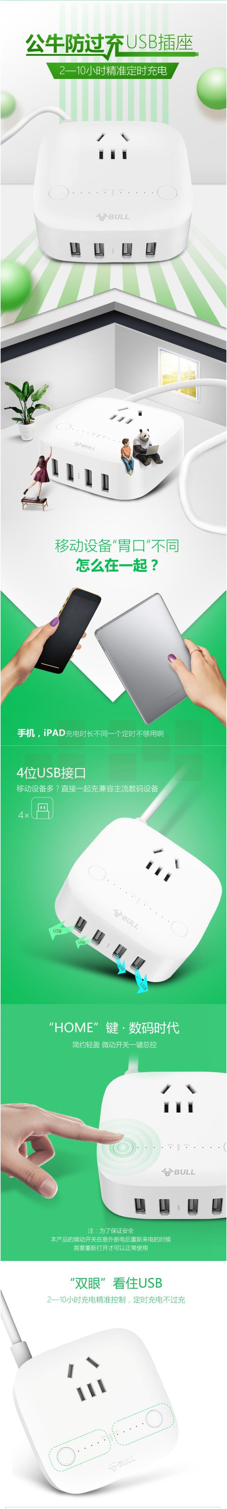 公牛 GN-U201T 1.5米接线板USB定时充(新国标)