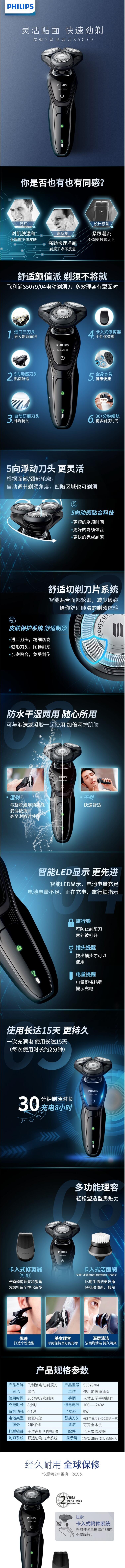 飞利浦(PHILIPS)S5079/04剃须刀电动刮胡刀 干湿双剃三刀头男士剃胡刀胡须刀刮胡子须刀
