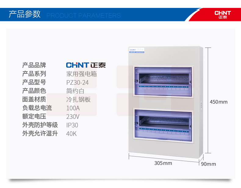 正泰(CHNT)PZ30-24 家用照明箱 明装 空开箱 断路器布线箱 24回路
