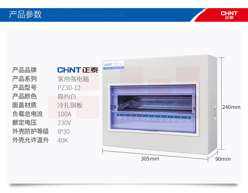 正泰(CHNT) PZ30-12 家用照明箱 明装 空开箱 断路器布线箱 12回路 1mm